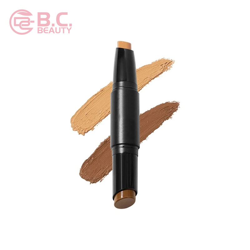 1. Şekillendirme çubuğunun şekillendirici krem kısmı için alnın yanına ve saç çizgisine bir gölge çizgisi çizin; Hafifçe gülümsediğinizde, yüzün daha narin görünmesi için yanağın kenarına bir gölge çizgisi çizin.